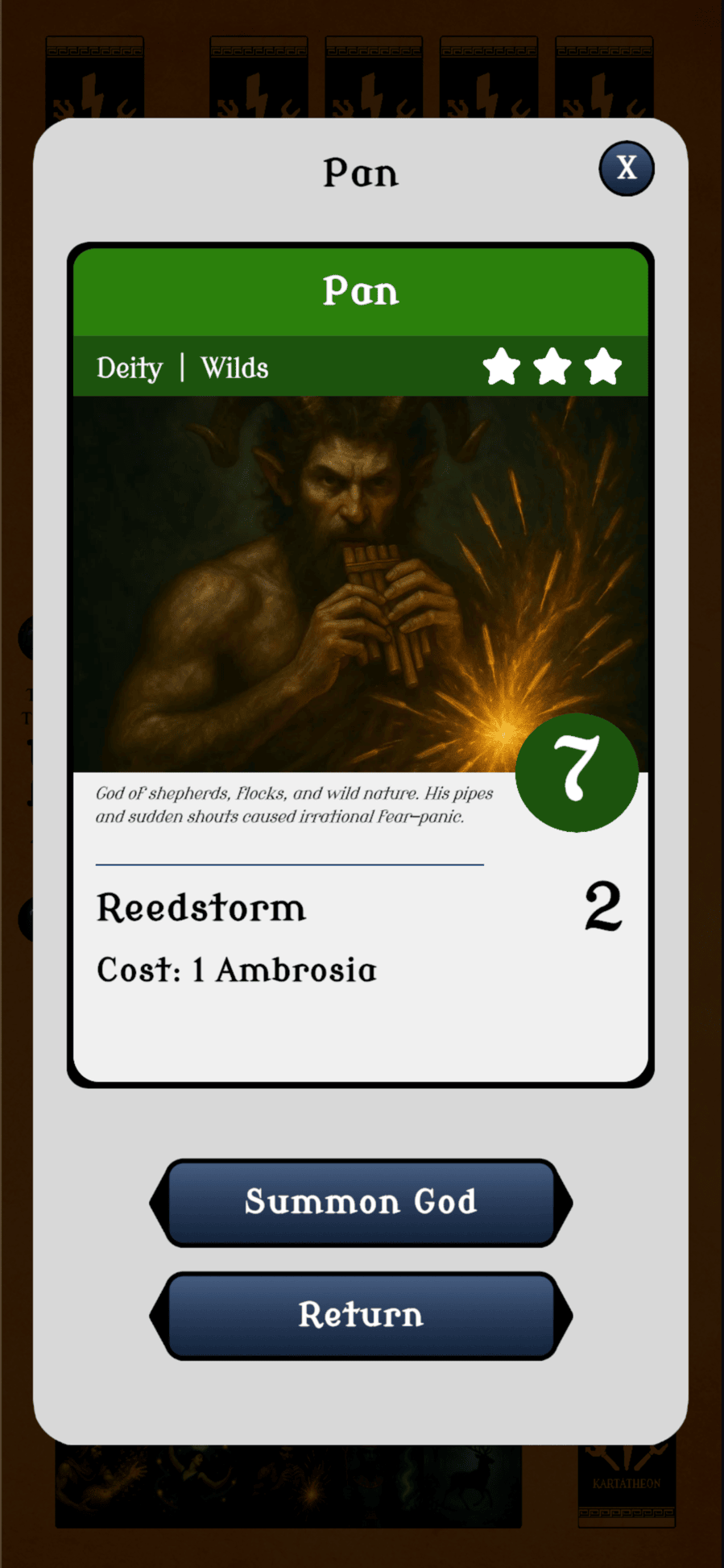 ~ Gain Ambrosia each turn, balancing offense and defense as you manage limited divine energy.